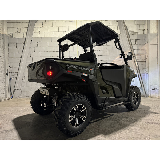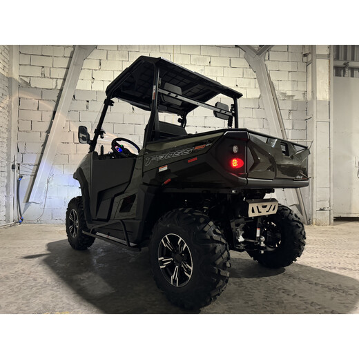 Знаменитый UTV 550 T-Boss EPS стал еще лучше, прочнее и долговечнее. Современный дизайн со спортивным акцентом и новые алюминиевые диски привлекают внимание с первого взгляда. Усилитель руля делает вождение приятным и легким даже при полной загрузке. Новый стальной кузов выдерживает даже суровые переезды. Кроме того, двигатель совершенно новый, мощнее, живее и экономичнее. Новый Linhai-Yamaha 550 T-BOSS EPS — идеальный помощник для любых работ в лесу, на строительных площадках, в парках, в саду, на спортивных объектах и для снабжения горных отелей.Новый одноцилиндровый двигатель с электронным впрыском обладает повышенной мощностью, которой достаточно для интенсивной работы и быстрого разгона. Современный впрыск топлива обеспечивает низкий расход топлива и низкий уровень выбросов. Передачу мощности обеспечивает надежная автоматическая коробка передач ведущего канадского производителя CVTech, которая также оснащена парковочным режимом P.Широкая конструкция шасси обеспечивает устойчивость на любой местности, большой ход подвески и низкий центр тяжести обеспечивают комфортное вождение. Все колеса имеют независимую подвеску. Комфортное вождение также обеспечивается соответствующей развесовкой и небольшим радиусом поворота.Многофункциональный ЖК-дисплей с синей подсветкой легко читается и содержит всю необходимую информацию: цифровые тахометр и спидометр, индикатор пробега, индикатор моточасов, индикатор привода 2х4/4х4, индикатор температуры охлаждающей жидкости, цифровой индикатор уровня топлива, индикатор нейтральной передачи, Индикатор дневных ходовых огней, поворотников и задней передачи.Linhai UTV 550 T-BOSS EFi EPS в стандартной комплектации оснащен прочной, устойчивой к ультрафиолетовому излучению крышей, двойным плексигласом, массивным передним обводом, пластиковые двери, ручками для пассажиров, большим транспортировочным ящиком, подголовниками, буксирным крюком и лебедкой с дистанционным управлением и тяговым усилием 3000 фунтов.