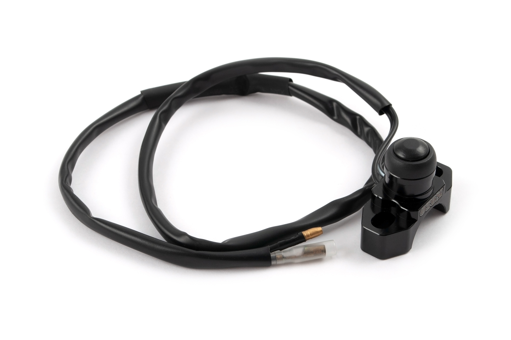 Универсальная кнопка запуска и остановки двигателя OTOM черного цвета. Выполняет функции включения или выключения двигателя в зависимости от схемы подключения. Корпус изготовлен из CNC алюминия с черным покрытием, обеспечивает надежную влагозащиту. Стандартное крепление двумя болтами вместо штатного рычага сцепления или тормозной машинки. Подходит для установки как с левой, так и с правой стороны руля.