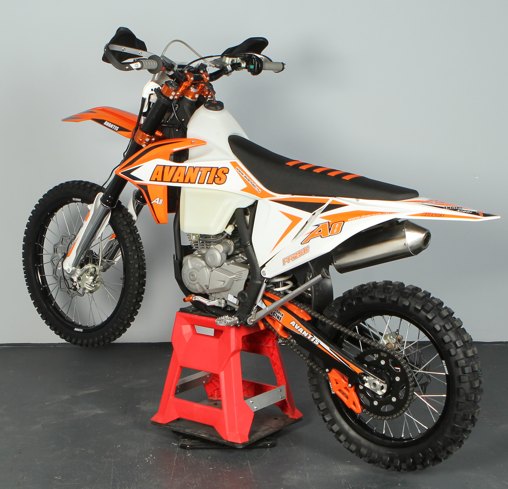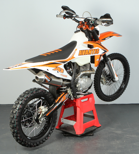Новый Avantis A8 разработан специально для тех, кто хочет войти в мир эндуро. Комплектация с двигателем ZS 172 FMM-5 — именно тот вариант, с которого стоит начать новичкам.Мощность двигателя составляет 25 л.с., что является оптимальным выбором для первых тренировок на оффроуде. Внедорожная компоновка модели приближена к спортивной серии Avantis Enduro, поэтому данная модель отличается легкостью в управлении и не потребует больших усилий при маневрировании даже у тех, кто впервые сел за руль мотоцикла.Благодаря надежной подвеске ККЕ и большому дорожному просвету Авантис А8 легко преодолевает даже самый сложный рельеф. Однако важно помнить, что это полноразмерный взрослый мотоцикл. Высота по седлу у него составляет 960 мм и накладывает некоторые ограничения: комфортно на этом мотоцикле будет обладателям роста от 175 см и выше.Все элементы управления размещены таким образом, чтобы райдер быстро запомнил расположение основных органов управления. Яркая LED-панель обеспечивает отличную читаемость индикаций и показателей, что позволит легко отслеживать нужную информацию. Яркая светодиодная фара головного света обеспечивает хорошую видимость и большое пятно освещения, поэтому тренироваться на Avantis A8 можно в любое время суток.На Avantis A8 с завода установлены алюминиевая защита рычагов, пластиковая защита картера и герметичная защита всех разъемов. Колеса мотоцикла базируются на легких и прочных ободах UNISON и обуты во внедорожную резину Yuanxing. Данные покрышки отличаются редкой шашкой и обеспечивают хороший зацеп.Приобретая Авантис А8 вы получаете управляемый, надежный, а главное — полностью подготовленный для тренировок мотоцикл, на котором уже в базовой комплектации имеется все необходимое для покорения бездорожья.