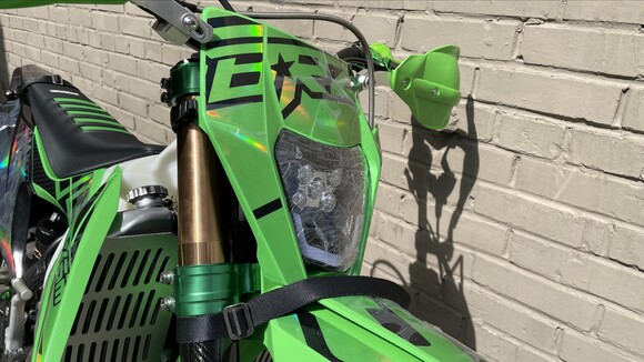 Комплектация Руль IGP twinwall 28мм алюминиевый, короткоходная ручка газа NIBBI, ручки IGP "неломайки", Алюминиевые фрезерованные траверсы CNC. Цепь 520. Алюминиевые подножки водителя и лапки КПП,Алюминиевая защита картера,защита тормозного диска,защита маятника,защита рук,боковая защита рамы,алюминиевая ведомая звезда CNC