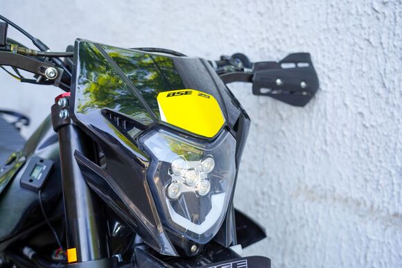 BSE Z9 – полноразмерный спортивный эндуро мотоцикл на стальной раме. Оснащен новым мотором ZS175 300 кубов с воздушным охлаждением. Лёгкий и маневренный. Выполнен полностью в черном цвете.