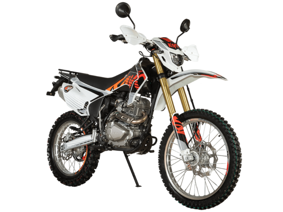 Мотоцикл KAYO T1 300 Enduro 21/18 2025 ПТС – надёжный и производительный эндуро, готовый встретить вызовы внедорожных трасс.Оснащён 4-тактным двигателем объёмом 271 см³ с верхним распредвалом и воздушным типом охлаждения. Максимальная мощность в 24 л.с. развивает при 8500 об/мин, а максимальный крутящий момент 22 Нм при 6500 об/мин. За подачу топлива отвечает карбюратор PD30. Он обеспечивает плавность хода, топливную экономность и бесперебойную работу двигателя даже в самых жёстких условиях. Соотношение диаметра цилиндра и хода поршня 75,0х61,4. Степень сжатия 9,29:1. Запуск двигателя осуществляется с помощью электростартера или кикстартера. Тип зажигания CDI. Снизу установлена пластиковая защита двигателя.Механическая коробка передач имеет 5 ступеней. Привод цепной. Объём топливного бака 9 литров.На мотоцикл установлены спицованные колёса с алюминиевыми ободами, алюминиевыми ступицами и буксаторами. Обуты во внедорожные покрышки YUANXING 80/100-21 и 110/100-18.Длина подвески спереди 880 мм, длина задней подвески 380 мм. Задняя подвеска оснащена прогрессией. Траверсы выполнены из литого алюминия, а прогрессия – из стали. За торможение отвечают дисковые гидравлические тормоза.Прочная рама и маятник выполнены из стали. Мотоцикл имеет ПТС и оснащён всем необходимым для поездок по дорогам общего пользования: диодная светотехника (яркая фара, поворотники, стоп-сигнал), звуковой сигнал, цифровая приборная панель, зеркала заднего вида.Для управления установлен руль переменного сечения 28 мм Fatbar со стандартными рычагами сцепления и тормоза, на который установлена алюминиевая защита рычагов с широкими ветрозащитными щитками. Имеется платформа для перевозки грузов и дополнительные подножки для поездок с пассажиром.Габариты мотоцикла 2100х810х1180 мм, вес 119 кг. Клиренс 340 мм, колёсная база 1420 мм, высота по седлу 900 мм.