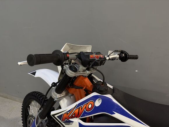 Мотоцикл кроссовый KAYO K4 MX - популярный внедорожный мотоцикл известного китайского производителя, завоевавший признание тысяч довольных владельцев. Обновленная версия отличается оптимально сбалансированной комплектацией и большими возможностями практического использования. KAYO K4 - это отличный выбор для райдеров с опытом, позволит совершенствовать навыки управления внедорожной мототехникой и получать весь спектр эмоций от поездок по бездорожью.В мощной раме KAYO K4 MX устанавливается надежный и неприхотливый 4-тактник воздушного охлаждения ZS172FMM с 5-ступенчатой коробкой передач. Этот мотор отличают отличная производительность и стабильные рабочие характеристики в широком диапазоне оборотов. Максимальная развиваемая мощность силовой установки, в тракте подготовки топлива которой задействован карбюратор NIBBI PE30, составляет 21 лошадиную силу.Подбор компонентов подвески мотоцикла продиктован условиями использования техники: длинноходные амортизаторы с регулировками рабочих характеристик установлены как в траверсах передней вилки перевернутого типа, так и на заднем маятнике с системой прогрессии. Алюминиевые диски колес размерности 21/18 дюймов оснащены буксаторами и комплектуются внедорожной резиной с выраженными грунтозацепами протектора.За безопасность эксплуатации отвечает надежная и производительная дисковая гидравлика тормозной системы: на переднем колесе установлен двухпоршневой тормозной суппорт, на заднем - однопоршневой. Высота по седлу KAYO K4 MX составляет 850 миллиметров - на байке с комфортом будут себя чувствовать как люди среднего роста, так и высокие райдеры.