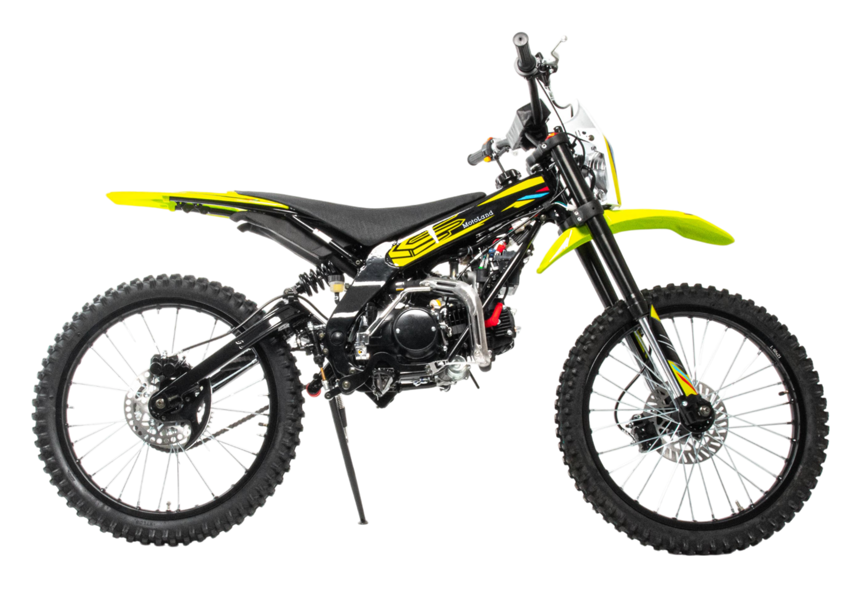 Трейлбайк MotoLand Jumper 125 – малокубатурный аппарат для покорения бездорожья, лучший выбор для исследования пересеченной местности и окрестностей загородного дома или дачи.В стальной трубчатой раме трейлбайка Jumper установлен 1-цилиндровый 4-тактный двигатель с 2-клапанной головкой, рабочим объемом в 125 см3. Модель 2022 г оснащена электростартером.Мотор работает в паре с карбюратором Keihen PZ 26; такая конфигурация позволяет демонстрировать 7,5 «лошадей» максимальной мощности при 8000 об/мин. Показатели максимального крутящего момента составляют 8,5 H.m при 5000 об/мин.Байк комплектуется колесами диаметром 21 дюйм с легкими дисками. Колеса оснащены антибуксаторами. Штатная подвеска, представленная нерегулируемыми вилкой-перевертышем спереди и пружинным амортизатором сзади, опционально может быть заменена топовыми амортизаторами с регулировками, производства компании FASTACE. В комплект входит алюминиевый руль переменного сечения диаметром 28 миллиметров, цепкие подножки, армированные шланги.
