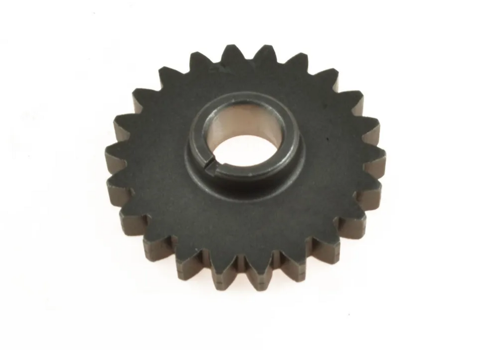Шестерня привода коленвала для двигателей YX 125/140/150/160, предназначена для установки на вторичный вал. Работает в паре с шестерней кикстартера и шестерней корзины сцепления. Является одной из наиболее нагруженных деталей пускового механизма. Проблемы с запуском кикстартером (заедание, проскальзывание) часто вызваны именно повреждением этой детали либо её собратов в зацеплении.
