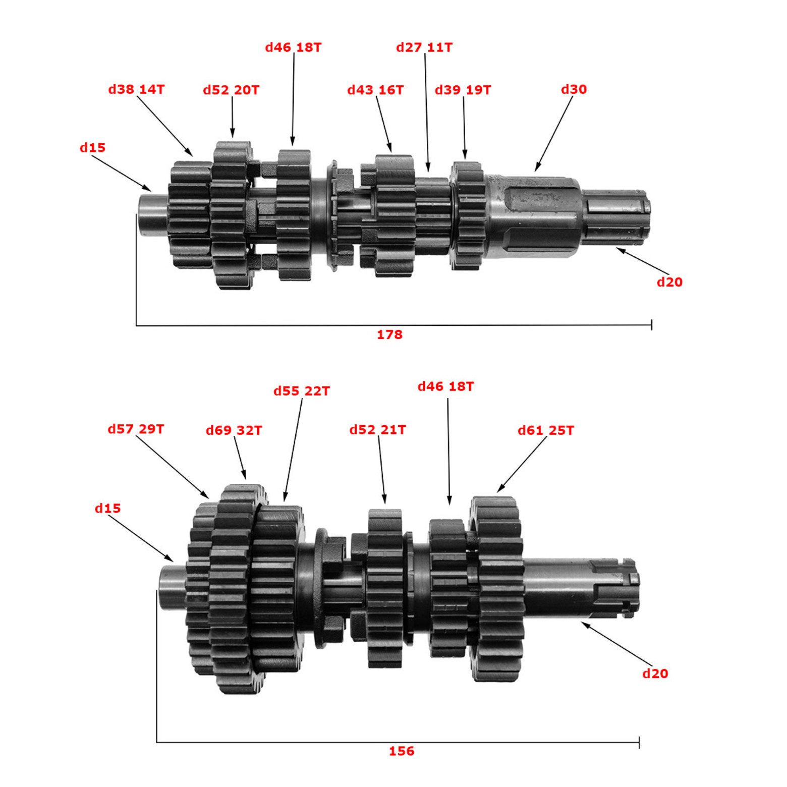 Валы коробки передач в сборе (комплект) для двигателей ZS174MN-3 с 5-ступенчатой КПП. Оригинальные запасные части, полностью соответствуют стандартам завода-изготовителя. Используются для ремонта либо полной замены штатных валов на мотоциклах CBS300 (ZS174-3), NB300 (ZS174-5). Готовое решение для восстановления точной работы коробки передач и надежности конструкции.