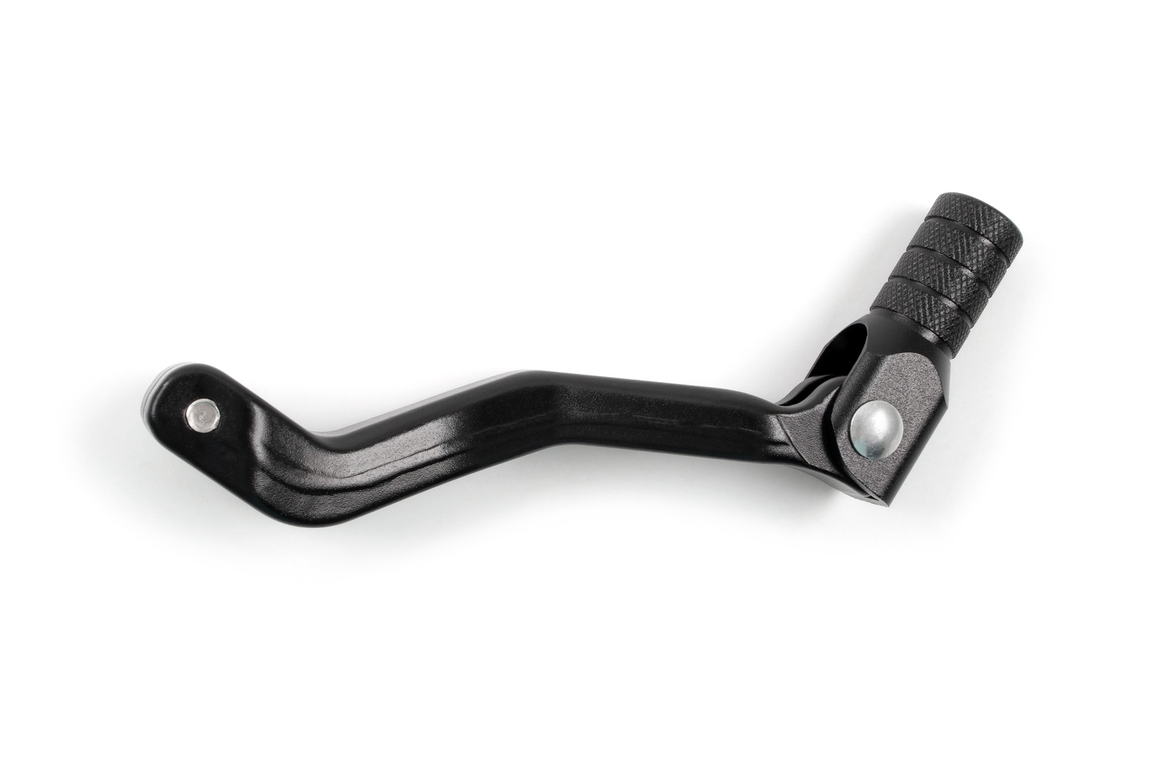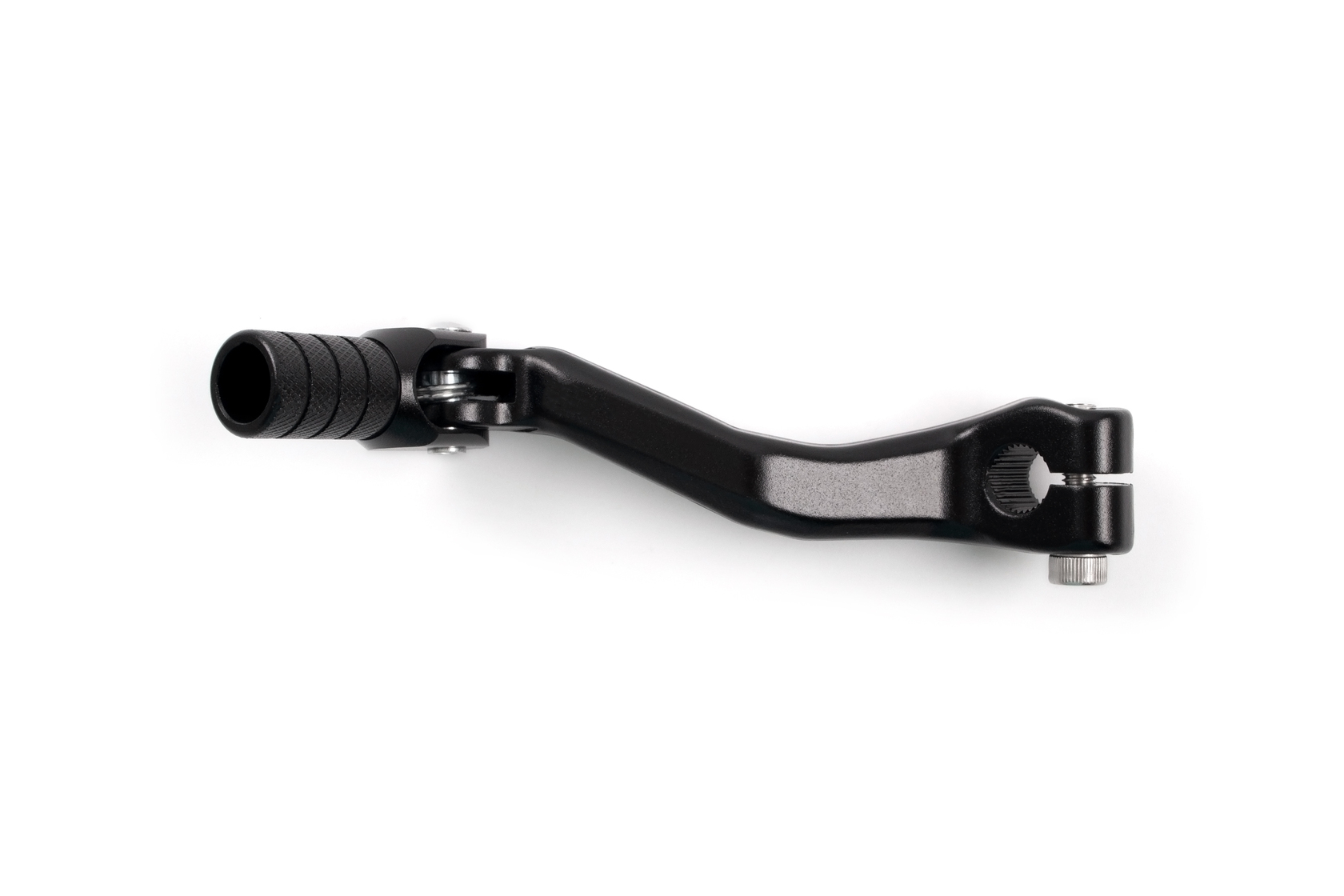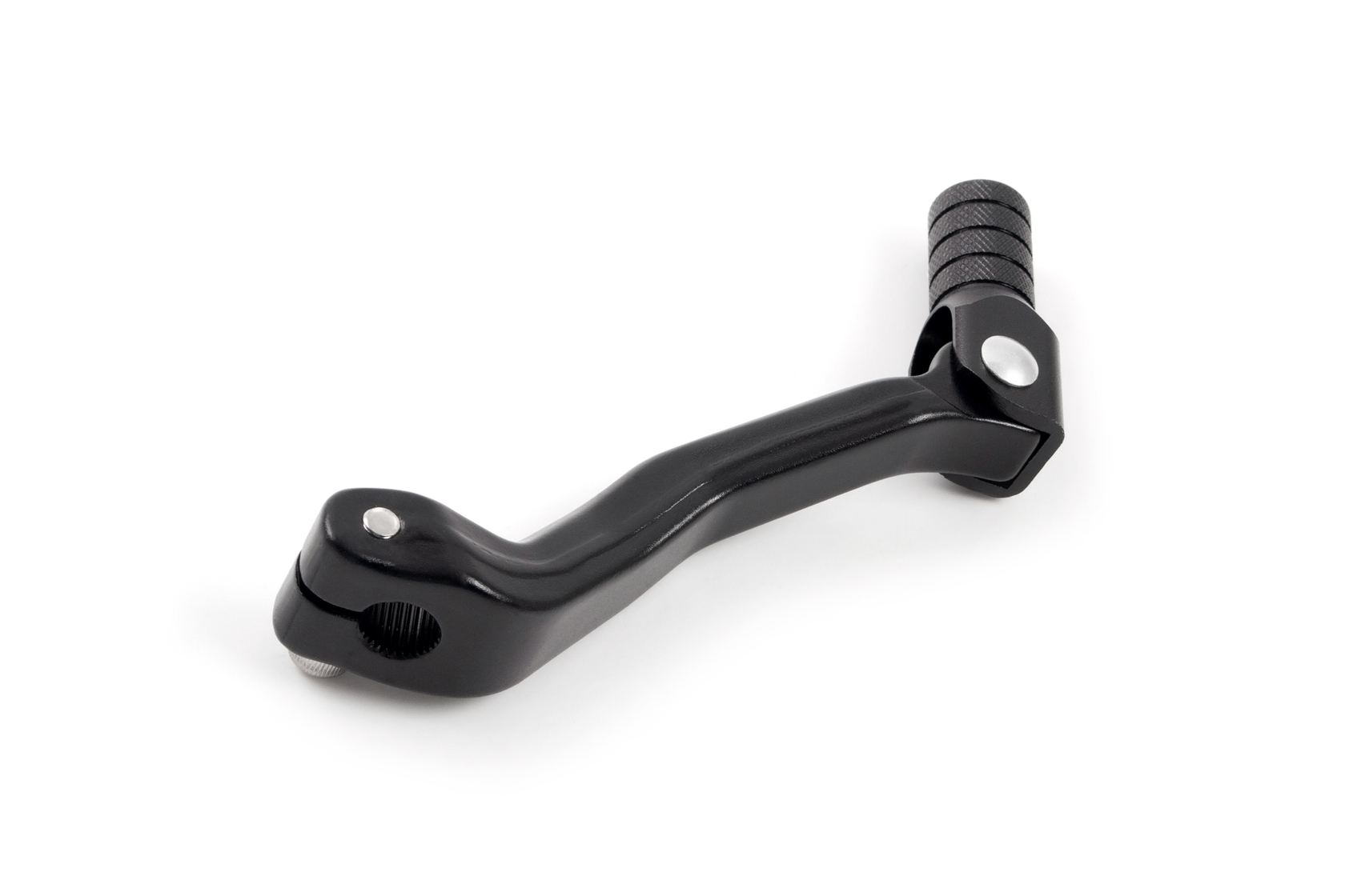 Алюминиевый складной рычаг переключения передач черного цвета для эндуро мотоциклов с двигателями 165-172 FMM и 174 CBS-NB. Изготовлен из литого алюминия со складным кончиком, который предотвращает поломку рычага при падении или боковом ударе. Универсальная конструкция с вылетом, не гнет вал при падениях. Установка без втулки. Совместим с двигателями 165FMM, ZS170MM-2, ZS172-3A, ZS172-5A, ZS174MN-3.