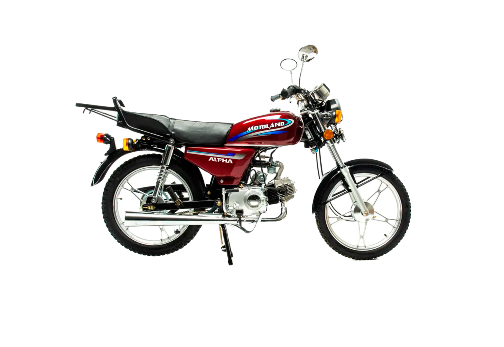 MotoLand Alpha 11 это всеми полюбившейся мопед который не нуждается в представлении.Мопед можно использовать для самых различных целей: для одиночного или совместного передвижения в городском потоке, сельской местности, поездки на природу, рыбалку и охотуПри этом он универсален и подходит мотолюбителям любого возраста,и опыта вождения.Для подростков, подойдет как подарок и первый мотоцикл для только начинающего свое знакомство с миром мототехникиВзрослых, которым нужна техника для поездок из точки А в точку Б и обратно, именно в таком режиме он способен показать себя с лучшей стороны.Мопед полностью отвечает требованиям к безопасному движению по городу и за городом: оснащен фарой дальнего и ближнего света, поворотниками, стоп-сигналом, звуковым сигналом, зеркалами заднего вида, габаритными светоотражателямиДля того чтобы ездить на мопеде, нет необходимости в регистрации в ГАИ и страховка.Техническая сторонаМопед поставляется с 50 кубовым одноцилиндровым четырехтактным двигателем с воздушным охлаждением ZS50-A (139FMB) конструкция которого полностью повторяет знаменитый мотор HONDA CUB.Установлен карбюратор PZ19 с системой обогащения и пуском в любую погоду и время года.Двигатель работает ровно, имеет высокую мощность в широком диапазоне оборотов, что позволяет комфортно трогаться и быть уверенным, что двигатель не заглохнет в неподходящий момент.Двигатель имеет возможность легкого запуска с кнопки на руле, так как имеет электростартер, а при необходимости можно воспользоваться кик стартером.Механическая трансмиссия содержит 4 передачиМопед имеет хорошую динамику разгона, расход 3 л на 100 км, объем бака 7л, которого хватит на 200+км
