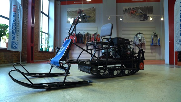 Установленный в базовой комплектации лыжный модуль с сиденьем превращает Бурлак-М Опти-R в доступный аналог миниснегохода.Модель собрана на классической базе длиной 1450 и шириной 510 мм, имеет катковую подвеску, комплектуется двигателем 15 л.с и трансмиссией вариаторного типа.На лыжном модуле установлены две лыжи от снегохода «Тайга». Галогеновая фара входит в базовую комплектацию.Дополнительно можно установить тормоз, реверс и съемный кофр.