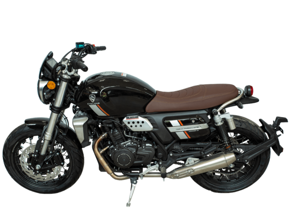 CYCLONE RE401 (SR400-B) 2024 – классик, в котором подчёркнутая простота объединяется с современными технологиями. Данная модель является более продвинутой версией модели RE3 (SR-400) – мотоцикл обладает более современным дизайном, снабжён стильными металлическими накладками на радиатор, а также топливным баком, объём которого увеличен до 20 литров.Двухцилиндровый четырёхтактный двигатель объёмом 401 см3 выдаёт 43 л.с. на 9500 об/мин. Инжекторный впрыск топлива с инжектором BOSCH увеличивает топливную экономичность, а также позволяет добиться высокой приёмистости и неприхотливости агрегата. Жидкостная система охлаждения не допустит перегрева двигателя даже при самом агрессивном вождении. На мотоцикл установлена 6-ступенчатая механическая коробка передач.Максимальная скорость мотоцикла составляет 150 км/ч.RE401 оснащён классическими спицованными колёсами диаметром 17 дюймов. Колёса обуты в бескамерные покрышки TIMSUN. С неровностями дороги эффективно справляются телескопическая вилка перевёрнутого типа спереди и маятник с двумя амортизаторами сзади. Ход передней подвески составляет 130 мм, задней – 81 мм. Оба компонента подвески являются регулируемыми. Эффективное и безопасное замедление с любых скоростей обеспечивают гидравлические дисковые тормоза с ABS спереди и сзади.Клиренс мотоцикла составляет 170 мм. Объём топливного бака – 20 л. Снаряжённая масса – 186 кг.Из дополнительного оборудования можно выделить USB-порт и датчики давления в шинах.Мотоцикл сочетает в себе отличные технические характеристики, комфорт и надёжность, что позволяет вам ощутить настоящую свободу на любой дороге.