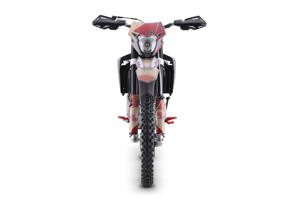 За основу мы взяли успешный полноразмерный Z5 и упростили комплектацию, чтобы сделать максимально привлекательный прайс, оставив главные компоненты — надежный 250-кубовый мотор Zonsen и усиленную стальную раму Bosuer. В итоге получили полноразмерный, функциональный и мощный эндуро мотоцикл. Идеально сбалансированный, устойчивый и готовый прощать ошибки при езде.Сердце Z5L – мощный, эластичный и надежный 250 кубовый Zonsen ZS172FMM-3A (CB250-F), 21 лс, воздушное охлаждение. Система подачи топлива – проверенный карбюратор NIBBI PWK34.Z5L уже в заводской комплектации готов к покорению серьезного бездорожья: нерегулируемая энергоемкая подвеска с большими ходами, вилка “перевертыш” и наличие рычагов задней прогрессии. Установлена “злая” внедорожная резина Carrystone. Мощная гидравлическая тормозная система HSК Racing остановит байк в любых условиях. На мотоцикле установлены: усиленные черные колёсные диски MOJO, CNC подножки c увеличенным зацепом, датчик моточасов, защита рук, грипсы и ручка газа Nibbi Racing. В фару установлена диодная лампа.Среднеразмерный Z5L подойдёт для райдеров начального и среднего уровня, которые не готовы переплачивать за более богатую комплектацию. Крепкий, надёжный и неприхотливый BSE Z5L обладает всеми качествами настоящего эндуро байка при доступной цене.