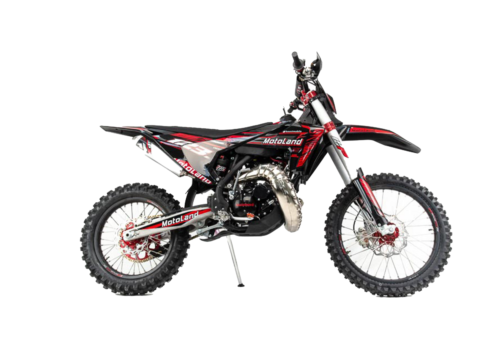 Полноценный кроссовый мотоцикл Motoland XT 250 ST (2-STROKE) с 2-х тактным двигателем 1E66MM с двумя радиаторами водяного охлаждения с вентилятором, для усиленного потока охлаждения, улучшенной защитой радиаторов, а так же карбюратором MIKUNI (система PWK) 250 см³, мощностью 37 л.с., полностью настраиваемой подвеской FASTACE и долговечными CNC-деталями. Идеален для езды по бездорожью и соревнований по мотокроссу. Подходит для любителей и профессиональных райдеров.Топовый мотоцикл выглядит соответствующе — стильно и солидно. Без лишнего пафоса, но с уверенностью в собственном превосходстве над аналогами. Как и другие модели Motoland покрыт комбинированным пластиком, который не ломается при сгибании. Все стыки идеально подогнаны, наклейки ровные. Кроссовый мотоцикл доступен в красном цвете — внешний вид кросса подчёркивает несгибаемый характер и нацеленность на бескомпромиссную спортивную борьбу. Длина мотоцикла — 2200 мм, высота по седлу — 970 мм. Хорошее соотношение, которое подойдёт большинству пользователей среднего и большого роста.На кроссовый мотоцикл установлен комбинированный руль RENTHAL (с вибропроставками) переменного сечения (28 мм в месте крепления и 22 мм на концах под грипсами) с низким подъёмом и с подушкой IGP.