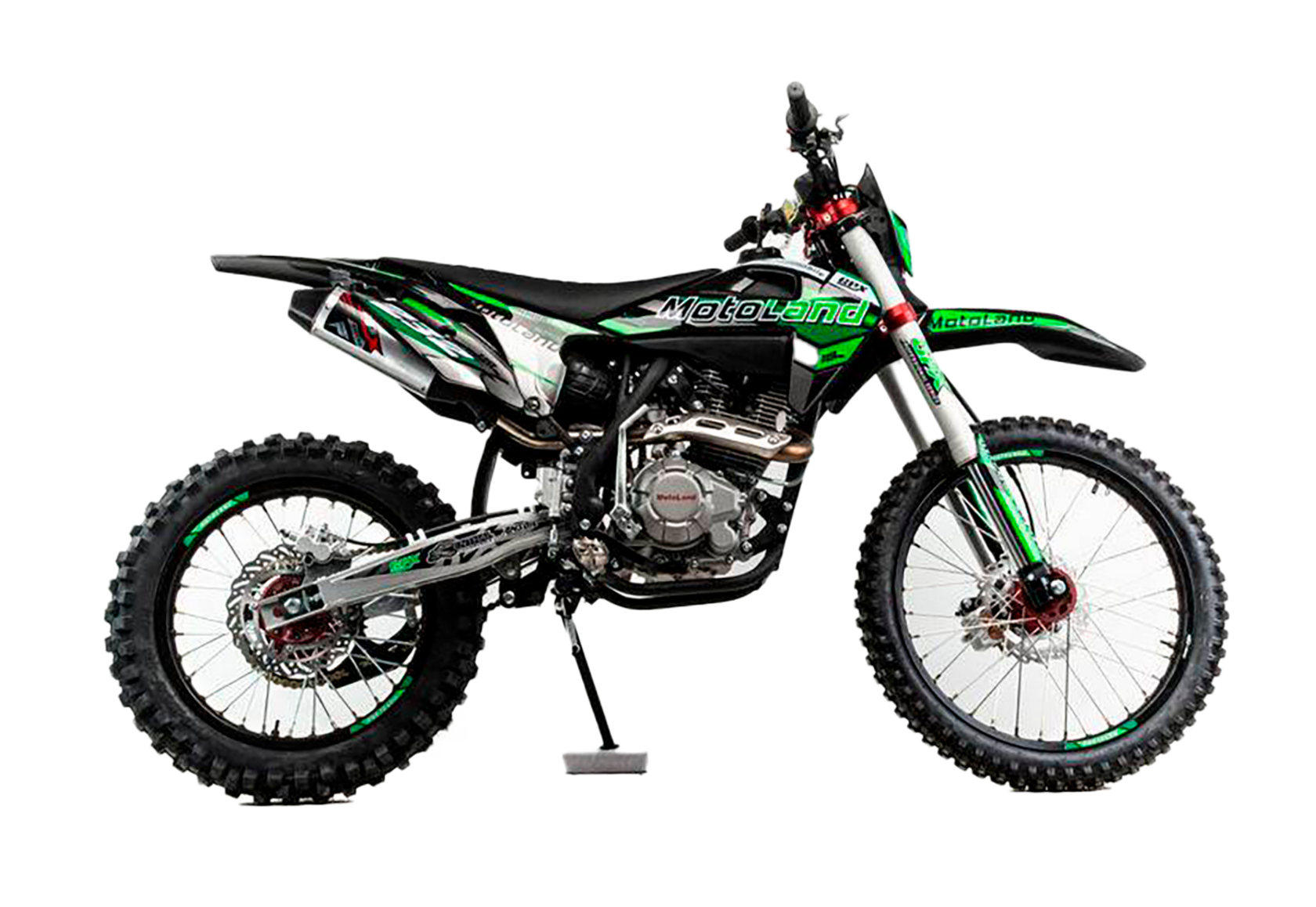 Модель XT 300 HS, он стал еще мощнее, с увеличенным объемом до 300 см3 !!!Это средне размерный мотоцикл, с уменьшенным весом и достойной динамикой. Установлен мощный двигатель 175FMM 300 СС, мощностью 24 л.с, с увеличенным поршнем. Коробка передач механическая, пятиступенчатая. Карбюратор NIBBI N 30 оснащен резиновым патрубком, что обеспечивает хорошее снижение вибрации.Большой ход подвесок для комфортного передвижения по пересеченной местности, которые также позволяют ехать быстро и агрессивно. Надёжные литые траверсы и мощные амортизаторы GPX Professional, которые в свою очередь телескопические, перевёрнутого типа, оснащенные клапанами, для стравливания избыточного давления, что позволяет значительно повысить ресурс работы сальников. Мотоцикл больше предназначен для езды по пересеченной местности, чем для города, из-за профиля резины. Маневренный, удобный и прост в обслуживании, подходит мотолюбителям любого возраста и опыта вождения. Руль GPX переменного сечения. Сиденье выполнено с противоскользящим покрытием. Антибуксаторы на переднем и заднем колесе для драйва на пониженном давлении и защиты от смещения камеры.Выхлопная система GPX Racing. Быстрый доступ к воздушному фильтру для комфортного обслуживания. Обновленная тормозная система с надёжными двух поршневыми суппортами на переднем и заднем колесе. Ступицы CNC фрезерованные, алюминиевые. Кроссовая резина 80/100 "21 и 110/100 "18 с мощными грунтозацепами обеспечивают превосходное сцепление с грунтом и позволяют контролировать управляемость. Motoland XT 300 HS оснащён отличной галогеновой фарой головного света. Так же в комплекте есть щиток для номера, который ставится вместо фары при необходимости.Система зажигания электронная (CDI). Запуск двигателя комбинированный ножным кикстартером и электростартером. Цвет черно-зеленый.