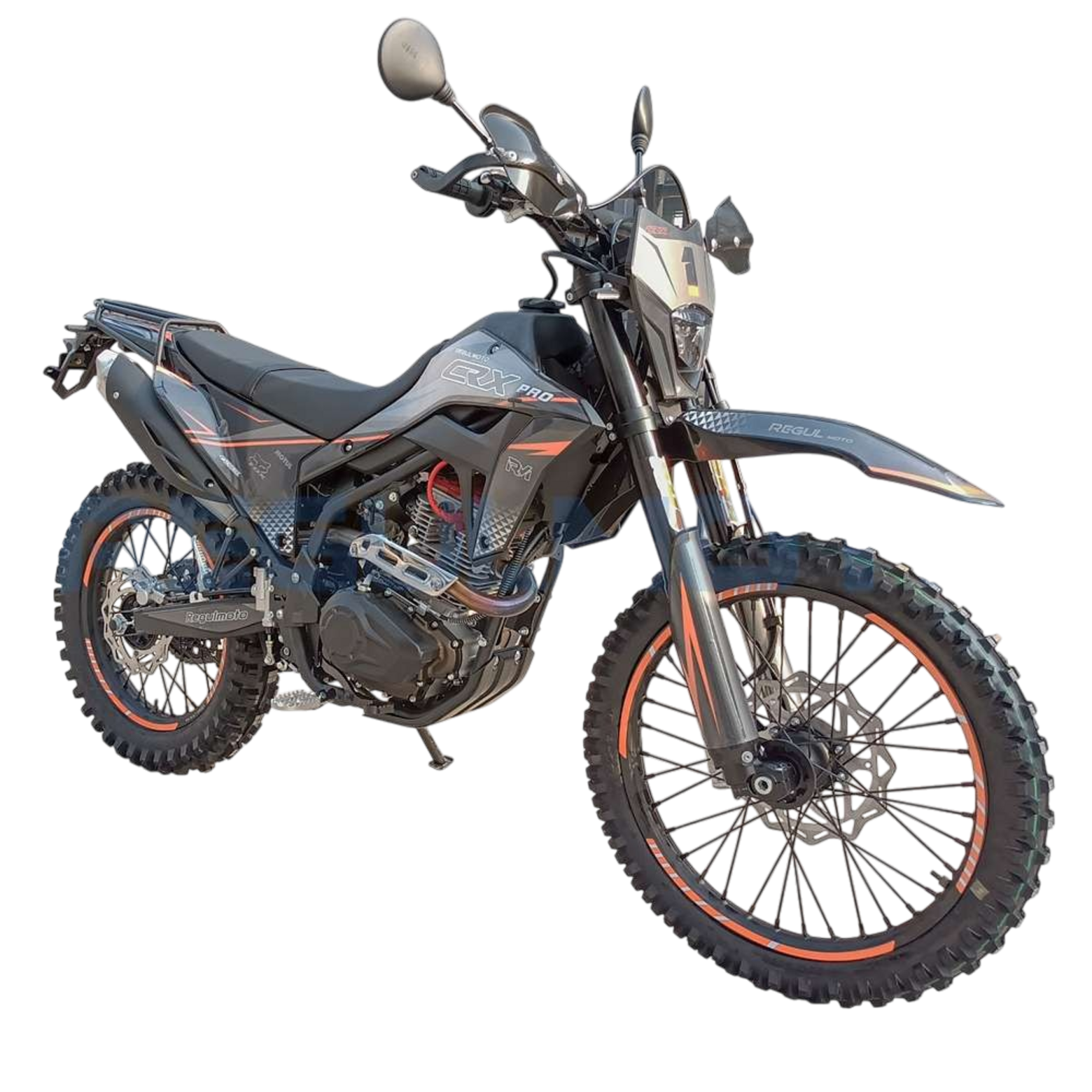 Новинка 2025 года: Мотоцикл Regulmoto CR-X 300 PROДля Regulmoto CR-X 300 PRO нет плохих дорог!Представляем долгожданную новинку 2025 года — мотоцикл Regulmoto CR-X PRO, созданный на базе легендарной Honda CRF300L. Этот мотоцикл оснащен мощным двигателем Zongshen CB300RL с четырмя клапанами, балансирным валом и карбюратором Nibbi Racing PE30, что обеспечивает отличную производительность и надежность.Подвеска и управление:• Передние амортизаторы с регулировкой сжатия и отбоя, зеркалом 41 мм для точной настройки под любые дорожные условия.