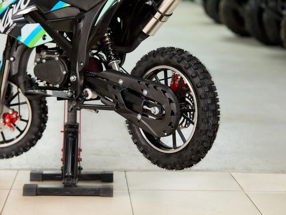 • Оснащён всем самым необходимым, прямо как “взрослая” кроссовая мототехника: динамическая подвеска, надёжные дисковые тормоза;