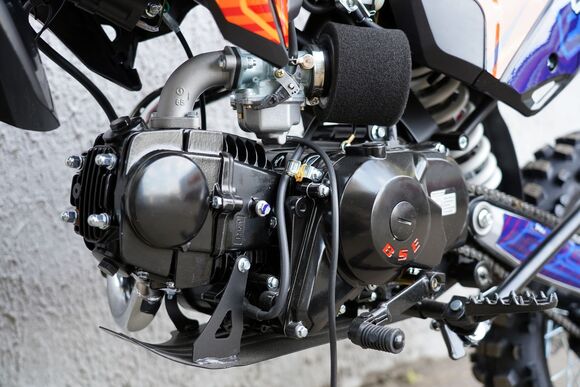 Если вы находитесь в поисках безопасного и маневренного мотоцикла для езды по бездорожью, BSE EX 17/14 - отличный выбор. Произведенный китайской компанией BSE, этот питбайк оснащается 49-кубовым 4-тактным мотором, развивающим максимальную мощность в 10 лошадиных сил при 7500 оборотах в минуту. Двигатель Zongshen ZS154FMI-2 славится высокой степенью надежности и эффективностью в тяжелых условиях бездорожья.Стальная рама питбайка обеспечивает прочность и устойчивость, а компактные размеры позволяют идеально маневрировать на узких тропах. Передняя перевернутая телескопическая подвеска и регулируемый по преднатягу задний моноамортизатор обеспечивают плавность хода и управляемость на пересеченной местности.Гидравлическая тормозная система с передним диском диаметром 220 мм и задним диском диаметром 190 мм обеспечивает эффективное и надежное торможение. Компактные размеры (1700 мм x 760 мм x 1090 мм) способствуют отличной маневренности, а дорожный просвет 290 мм позволяет мотоциклу легко преодолевать различные препятствия.Коробка передач с четырьмя скоростями (N-1-2-3-4) в сочетании с многодисковым сцеплением в масляной ванне гарантирует плавное переключение передач и стабильную работу в любых условиях. Наличие как электростартера, так и кикстартера обеспечивает удобство и надежность запуска двигателя.BSE EX 17/14 оснащен 17-дюймовым передним и 14-дюймовым задним колесами с шинами 60/100-17 и 90/100-14 соответственно, что дает отличное сцепление и устойчивость на грунтовых дорогах. Легкий вес байка (всего 75 кг в сухом состоянии) улучшает его маневренность и отзывчивость.