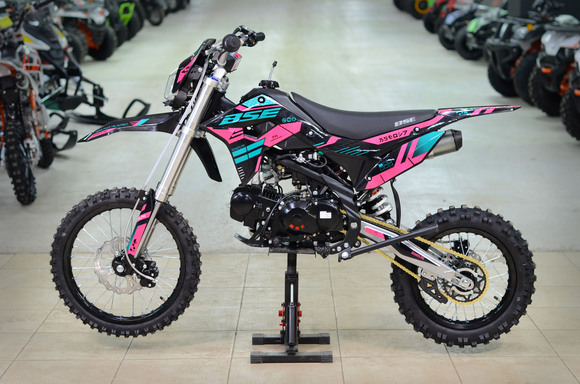 Питбайк BSE PH125 на колесах 17/14 дюймов – один из самых популярных, надежных и продаваемых питбайков 125 куб см среди китайских производителей! Этот классический питбайк объёмом 125 см3 обладает рядом модификаций и полезных усовершенствований, которые дополняют его функционал и отличают от конкурентов. PH125 оснащен колесами классическим для питбайка размером колес 17/14. Основа PH125 - рама из хромомолибденовой стали повышенной жесткости с литыми усилителями - фирменный знак качества завода BOSUER! Cиловая установка питбайка – надежный, тяговитый и мощный 4-тактный двигатель Zonghshen 125 куб см с воздушным охлаждением и мощностью 10 лс. Питает мотор карбюратор Jingke PZ 26. Питбайк оснащен 4-ступенчатой механической трансмиссией. Запуск мотора осуществляется при помощи электростартера или кик-стартера. Подвески с большими ходами: передняя - телескопическая вилка перевёрнуто типа, задняя- моноамортизатор. "Злая" резина, Мощная тормозная система HSK Racing, японские колесные подшипники NTN, усиленная цепь 428 Gold, защита мотора - питбайк полностью укомплектован всем необходимым для покатушек и гонок.