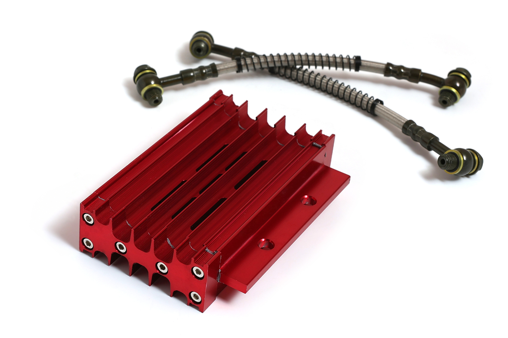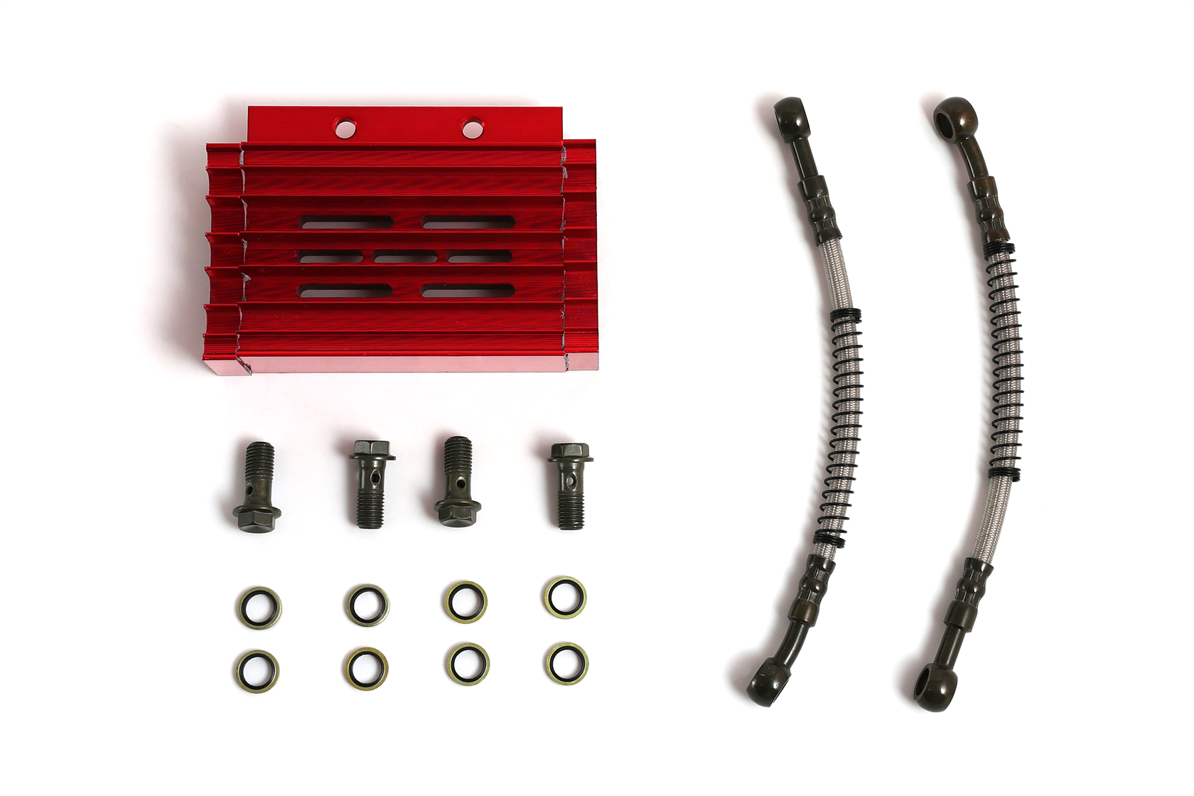 Эффективный радиатор масляного охлаждения с корпусом из алюминия, выполненный по технологии CNC, ярко-красного цвета. Предназначен для установки на 90% питбайков и мопедов с объёмом двигателя от 125 до 190 см³. Обеспечивает стабильное охлаждение масла, снижая риск перегрева двигателя и увеличивая его срок службы даже при интенсивной эксплуатации.