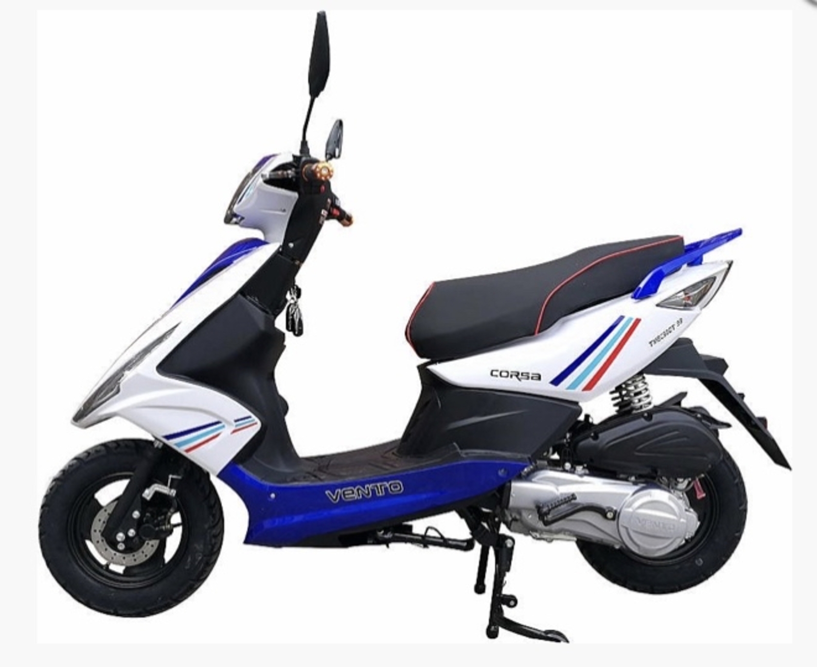 Главная ... Скутеры VENTO Скутер VENTO CORSA 49 cc (150) сигнализация Сине-белый