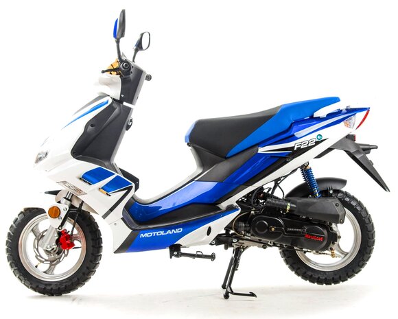 Мощный скутер Motoland F22 50 — это отличный вариант для загородного катания и поездок на рыбалку. На модели установлен одноцилиндровый четырехтактный двигатель мощностью 4 л/с и рабочим объемом 50 см3. Передний тормоз — дисковый, задний — барабанный. Колесные диски выполнены из алюминия методом литья. Выдерживает нагрузку до 150 кг, что позволяет перевозить одного пассажира. Под сиденьем есть багажное отделение. Приборная панель — электромеханическая.У нас Вы можете купить этот скутер с бесплатной доставкой по РФ и гарантией до года. Также его можно приобрести в рассрочку или в кредит.