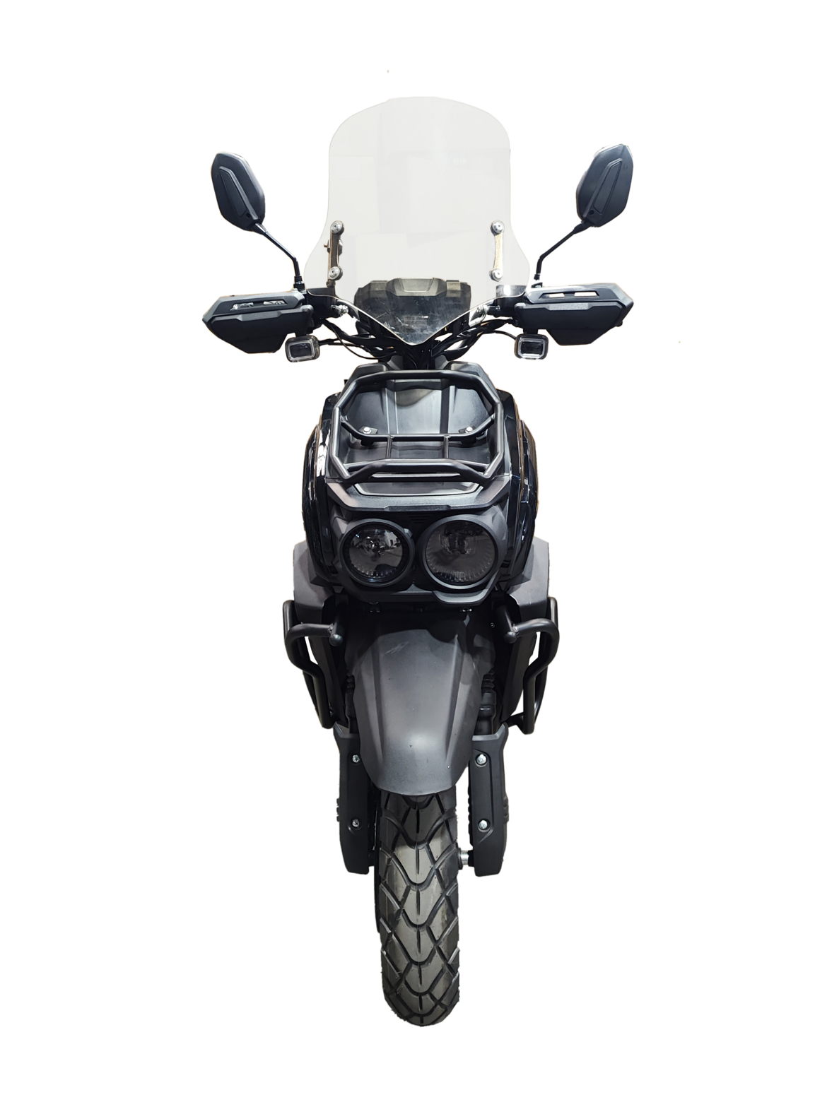 • Врожденная готовность к приключениям: Защитные дуги, внедорожный протектор шин, высокий клиренс (160 мм) и светодиодная оптика — вы изначально получаете скутер, готовый к асфальту, грунтовке и легкому бездорожью.