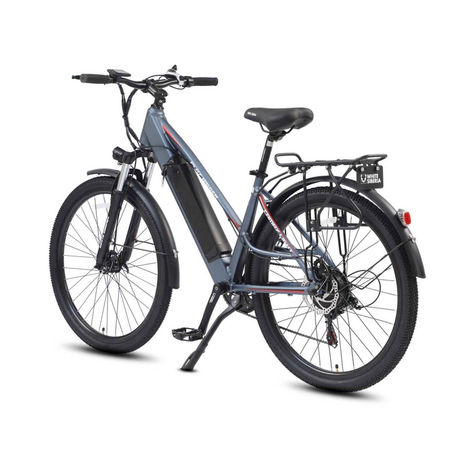 Электровелосипед WHITE SIBERIA CAMRY LIGHT 500WПрогулка на велосипеде - отличный способ отдохнуть в выходные! Но дальние поездки на велосипеде выматывают, изнуряют и потом нужен отдых от таких приключений... К счастью, есть способ сделать поездки в парк или пригород доступными каждому!Прогулочный электровелосипед CAMRY LIGHT 500W создан для неспешных и комфортных велопрогулок по дорогам российских городов и пригорода!Чем отличается CAMRY LIGHT от одноклассников?Мощный электромотор на 500W отлично помогает на подъёмах в горку и экономит ваши силы во время дальних поездок! Он позволит вам взглянуть по-новому на покатушки - даёт насладиться дорогой и красотами природы!Рама из авиационного алюминия с интегрированной легкосъёмной батареей на 36V 11A. Окрашена порошковой краской - надёжно защищена и красиво выглядит, благодаря 4 вариантам расцветки.Лёгкая, но прочная - велосипед в сборе весит всего 23 кг! Особая геометрия рамы с заниженной верхней трубой - благоприятно повлияла на удобство посадки, без ущерба для прочности конструкции. Вам не нужно высоко поднимать ногу чтобы сесть на велосипед!Колёса на 27,5 дюймов - отличное соотношение манёвренности и наката! А благодаря резине Kenda с универсальным рисунком протектора - ещё и отличное сцепление с различными типами дорожных покрытий.Металлические крылья на переднем и заднем колёсах полностью закрывают водителя от грязи, камней и брызг из-под колёс!Качественное навесное оборудование от фирмы SHIMANO, большой дисплей бортового компьютера с подсветкой, удобный лепесток газа, усиленный металлический багажник - всё это для вашего комфортного передвижения на комфортном и мягком сидении электровелосипеда CAMRY LIGHT 500W.Дисковые механические тормоза спереди и сзади - просты и надёжны.Электровелосипед CAMRY LIGHT - делает прогулки на велосипеде комфортными и доступными каждому!