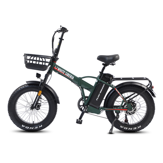 Электровелосипед WHITE SIBERIA SLAV PRO 1000WЭлектрический мини фет-байк - компактный и удобный маленький друг. С ним вы сможете комфортно передвигаться по городу, а в случае необходимости - сложить и уехать в пригород! Он создан для неспешных и комфортных велопрогулок по дорогам российских городов и пригорода!Чем же SLAV PRO так хорош?Мощный электромотор на 1000W отлично помогает на подъёмах в горку и экономит ваши силы во время дальних поездок! Он позволит вам взглянуть по-новому на покатушки - даёт насладиться дорогой и красотами города и парков!Усиленная рама из авиационного алюминия с легкосъёмной батареей на 48V 13A. Окрашена порошковой краской - надёжно защищена и красиво выглядит, благодаря 3 вариантам расцветки.Лёгкая, но прочная - велосипед в сборе весит всего 30 кг! Складная конструкция позволяет легко перевезти фет-байк в багажнике автомобиля или в общественном транспорте. Даже педали складываются! Так что во время хранения он занимает очень мало места.Колёса на 20 дюймов и шириной 4.0 - отличное соотношение манёвренности и проходимости! А благодаря резине Kenda с универсальным рисунком протектора - ещё и отличное сцепление с различными типами дорожных покрытий. Широкая резина лучше преодолевает различные препятствия - бордюры, корни деревьев, камни. В сочетании с регулируемой амортизационной вилкой - получается универсальный, устойчивый фет-байк.Металлические крылья на переднем и заднем колёсах полностью закрывают водителя от грязи, камней и брызг из-под колёс! Ведь широкая толстая резина с камерами даёт возможность ехать там, где другие идут пешком!Качественное навесное оборудование от фирмы SHIMANO, большой дисплей бортового компьютера с подсветкой, удобный лепесток газа, усиленный металлический багажник, передняя корзинка - всё это для вашего комфортного передвижения на мягком сидении электровелосипеда SLAV PRO 1000W.Дисковые механические тормоза спереди и сзади - просты и надёжны. А благодаря наличию подножке, ваш мини фет-байк может опереться и подождать, пока вы наслаждаетесь чашечкой ароматного кофе!Электровелосипед SLAV PRO - для ценителей компактных размеров, но огромных возможностей! Отдыхайте с удовольствием!