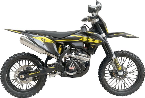 Новинка 2023 года от BSE - модель Т5 из абсолютно новой Т-серии!Наша гордость – мотор TYAN TYX300, который уже отлично зарекомендовал себя на модели Z11. Данный мотор является эксклюзивным для бренда BSE на российском рынке. Официально только у BSE Russia есть разрешение на установку мотора TYAN TYX300 на свою продукцию.Ещё одна особенность модели Т5 - абсолютно новая рама, которая полностью соответствует всем стандартам самого известного австрийского бренда мотоциклов для кросса и эндуро – KTM. Единая геометрия, эргономика, пропорции и углы вылета вилки. Высококачественная сталь, малый вес и большой запас прочности, идеальная развесовка. Мотоцикл оснащен легким алюминиевым подрамником, системой прогрессии и пластиковой защита мотора. Установлен новый тип пластика - прочный, легкий и современный. Колесная база в 1460 мм добавляет отменную маневренность.T5 оборудован фирменной заводской спортивной подвеской BSE Mojo Racing. Подвеска с большими ходами имеет полный диапазон регулировок и помогает отрабатывать даже самые жесткие приземления, с лёгкостью "глотая" все неровности. Подвеску легко настроить под любой рельеф, любую трассу и стиль езды. Вы ощутите результат, когда будете сокращать секунды круг за кругом! Особое внимание было направлено на снижение веса всей подвески.Разработка подвески BSE Mojo Racing производилась опытными инженерами-подвесочниками завода, а настройка - под чутким контролем заводской спортивной китайской командой BOSUER. Спереди установлена полностью регулируемая вилка «перевертыш» BSE Mojo Racing c перьями диаметром 53/58.5 мм, 930 мм. Сзади установлен полностью настраиваемый моноамортизатор BSE Mojo Racing 480 мм.На T5 установлен топливный бак на 8 л, мощная тормозная гидравлическая система с дисками диаметром 240 мм, звезды 13t – 49t, «зубастые» покрышки Carrystone 80/100-21 спереди и 110/90-18 сзади. Мотоцикл оснащается полностью светодиодной фарой головного света, грипсами и ручкой газа Nibbi Racing, цепкой шкуркой сиденья .Легкий (сухая масса 120 кг), прекрасно сбалансированный, мощный мотор. Отточенная управляемость. Подходит для новичков, а также спортсменов в дисциплинах эндуро, хард-эндуро, супер-эндуро, мотокросс.