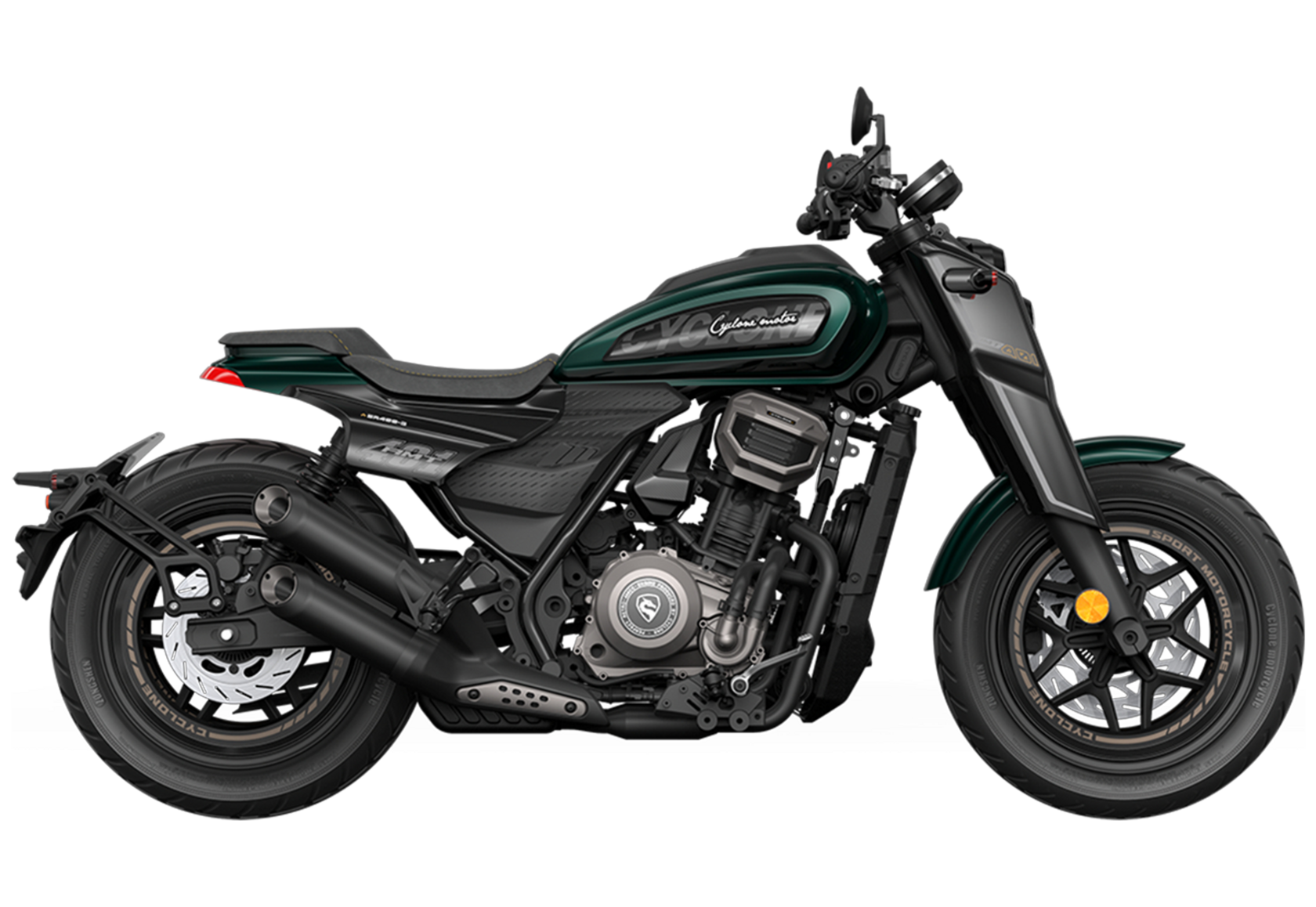 Мотоцикл CYCLONE AQS401 AMT – современный мощный круизёр с автоматической трансмиссией. Позволяет не отвлекаться на переключение передач и обеспечивает высокий комфорт во время поездок.На мотоцикл установлен 2-цилиндровый 4-тактный двигатель объёмом 401 см³ с 4 клапанами на каждом цилиндре и жидкостной системой охлаждения. Двигатель способен обеспечить мощность до 45 л.с. и разгонять мотоцикл до 155 км/ч.Благодаря автоматической коробке передач CYCLONE AQS401 AMT станет отличным выбором для тех, кто хочет поездок на круизёре без лишних усилий. Объём топливного бака 17 литров.Подвеска представлена классической телескопической вилкой спереди и 2 пружинно-гидравлическими амортизаторами сзади. Такая конфигурация даёт сбалансированную управляемость и комфорт при движении по неровностям.Передний тормоз от J.JUAN (BREMBO) оборудован 2-поршневым суппортом, а сзади используется однопоршневой суппорт с плавающей скобой. На мотоцикл установлены системы ABS и TCS, повышающие устойчивость и безопасность во время поездок.Диаметр колёс 17 дюймов, колёсная база 1480 мм. Высота по седлу 730 мм. Вес 185 кг. Имеется USB-порт для зарядки устройств.