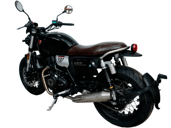 CYCLONE RE3 (SR400) – классик, в котором подчёркнутая простота объединяется с современными технологиями.Двухцилиндровый четырёхтактный двигатель объёмом 401 см3 выдаёт 43 л.с. на 9500 об/мин. Максимальный крутящий момент достигается на 8000 об/мин и составляет 34 Н·м. Инжекторный впрыск топлива с инжектором BOSCH увеличивает топливную экономичность, а также позволяет добиться высокой приёмистости и неприхотливости агрегата. Жидкостная система охлаждения не допустит перегрева двигателя даже при самом агрессивном вождении. На мотоцикл установлена 6-ступенчатая механическая коробка передач.Максимальная скорость мотоцикла составляет 140 км/ч.RE3 оснащён классическими спицованными колёсами диаметром 17 дюймов. Колёса обуты в бескамерные покрышки TIMSUN. С неровностями дороги эффективно справляются регулируемая телескопическая вилка перевёрнутого типа спереди и маятник с двумя амортизаторами сзади. Ход передней подвески составляет 110 мм, задней – 81 мм. Эффективное и безопасное замедление с любых скоростей обеспечивают гидравлические дисковые тормоза с ABS спереди и сзади.Клиренс мотоцикла составляет 145 мм. Объём топливного бака – 19 л. Снаряжённая масса – 186 кг.Из дополнительного оборудования можно выделить USB-порт, подсветку пультов и датчики давления в шинах.Мотоцикл сочетает в себе отличные технические характеристики, комфорт и надёжность, что позволяет вам ощутить настоящую свободу на любой дороге.