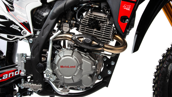 Мотоцикл Motoland WR250 - имеет мощный 4-х тактный двигатель 172FMM-3A 250 см3, на пике выдающий мощность 21 лс.. Это позволит выжать из мотоцикла максимум. На мотоцикле установлен карбюратор NIBBI PE 30 с обогатителем на руле. Улучшенная подвеска GPX Professional series, оснащена настройкой заднего амортизатора и прогрессии. Запуск двигателя производится как электростартером, так и кикстартером.Педаль п/п CNC складная, специально спроектированная для 172-го двигателя. Позволяет легко переключать передачи в любых режимах. Рама и маятник с двухсторонними рёбрами жёсткости.Глушитель с Power Bomb c карбоновой накладкой.На данной модели установлены: усиленная литая траверса, руль 28/22 мм переменного сечения с подушкой, защита рук, регулировка рычагов тормоза, увеличенные крылья, сидение с противоскользящим покрытием, цветная инверсионная панель приборов.Motoland WR250 - имеет мощный 4-х тактный двигатель 172FMM-3A 250 см3, на пике выдающий мощность 21 лс.. Это позволит выжать из мотоцикла максимум. На мотоцикле установлен карбюратор NIBBI PE 30 с обогатителем на руле. Улучшенная подвеска GPX Professional series, оснащена настройкой заднего амортизатора и прогрессии. Запуск двигателя производится как электростартером, так и кикстартером.Педаль п/п CNC складная, специально спроектированная для 172-го двигателя. Позволяет легко переключать передачи в любых режимах. Рама и маятник с двухсторонними рёбрами жёсткости.Глушитель с Power Bomb c карбоновой накладкой.На данной модели установлены: усиленная литая траверса, руль 28/22 мм переменного сечения с подушкой, защита рук, регулировка рычагов тормоза, увеличенные крылья, сидение с противоскользящим покрытием, цветная инверсионная панель приборов.