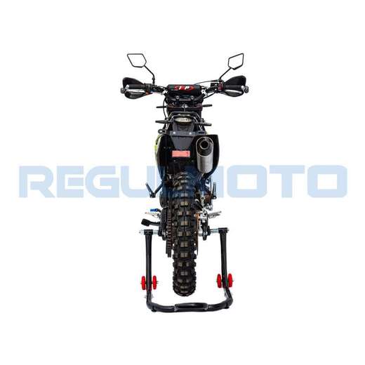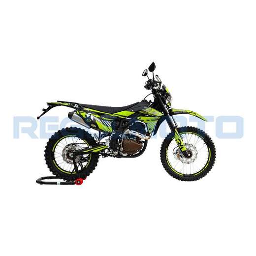 Стильный и доступный байк многоцелевого назначения найдет применение в качестве надежного аппарата для покорения бездорожья, а также может использоваться для решения широкого круга утилитарных задач и передвижения по дорогам общего пользования.В основе конструкции Regulmoto ZR 250 – мощная стальная рама, поставленная на колеса 21/18, которые наилучшим образом подготовлены к офф-роаду. Ободья и ступицы колес изготовлены из алюминия, также установлены усиленные спицы и буксаторы, надежно фиксирующие покрышки на ободе. Подвеску эндуро-байка представляют длинноходная телескопическая вилка-«перевертыш» спереди и стальной маятник с прогрессией и моноамортизатор с компенсационным резервуаром сзади. Работу амортизаторов при необходимости можно настроить при помощи регулировки сжатия/отбоя.Силовая установка мотоцикла представлена одноцилиндровым 4-тактным двигателем Zongshen ZS172FMM-5 (PR250) с воздушным охлаждением рабочим объемом в 249,9 см3 с балансировочным валом; за подготовку топливной смеси отвечает карбюратор Nibbi PE30. Технический потенциал надежного и производительного двигателя позволяет демонстрировать 21 лошадиную силу максимальной мощности и 18 Hm максимального крутящего момента.Regulmoto ZR 250 PR также привлекает внимание отличными внешними данными: мотоцикл комплектуется крепким и гибким пластиком с ярким дизайном, выполненным в узнаваемой стилистике популярной модели известного производителя.