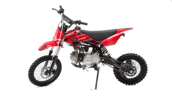 Питбайк Motoland GS Motors S12 отлично подходит для поездок по грунтовым дорогам и бездорожью. Хорошо чувствует себя на мягком и среднем грунте.Питбайк прост в управлении и не требует специального ухода, подойдёт как новичкам, так и любителям мотокросса.Передняя подвеска — телескопическая нерегулируемая вилка. Задняя подвеска маятниковая с моноамортизатором. Руль 22 мм с высоким подъёмом и перекладиной.Питбайк весит всего 60 кг, при этом выдерживает вес до 75 кг. Колёса спицованные, металлические. Размер заднего колеса — 12 дюймов, переднего — 14 дюймов. Тормоза дисковые, передний тормозной суппорт двухпоршневой, задний — однопоршневой.Питбайк оснащён карбюратором JINGKE и одноцилиндровым четырёхтактным двигателем с воздушным охлаждением. Надёжный мотор мощностью 9 л. с. и объемом 125 см³ разгоняет питбайк до 70 км/ч.Трансмиссия - 4х ступенчатая. Система зажигания электронная (CDI). Запуска двигателя - кикстартер. Мощность мотора и небольшой вес питбайка позволяют ему преодолевать значительные препятствия и хорошо заходить в подъёмы.Питбайк относится к бюджетным моделям, которые при должной эксплуатации работают без сбоев. При необходимости в нём легко сменить любую повреждённую деталь.