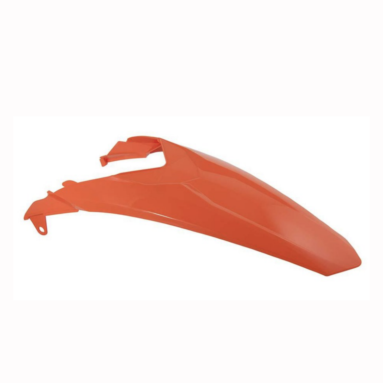 Оранжевое заднее крыло подходит для мотоциклов KTM SX85 2013–2016 года выпуска, а также китайских эндуро с рамой K5. Крыло изготовлено из прочного и эластичного пластика, полностью повторяет форму, размеры и крепления оригинальной детали KTM, является аналогом фирменного крыла с артикулом 4710801300004. Обеспечивает надёжную защиту мотоцикла от грязи и воды, легко устанавливается на штатные места без доработок. Яркий фирменный оранжевый цвет придаёт вашему мотоциклу стильный и современный вид.